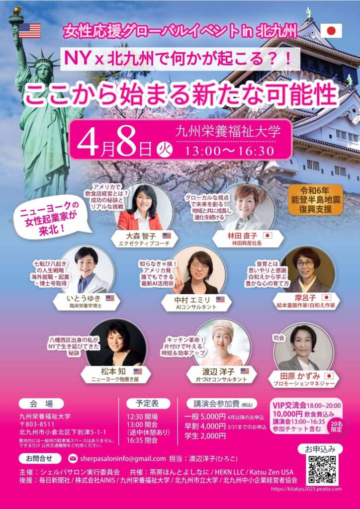 この講演会は、北九州市出身の女性を含むシカゴやニューヨーク在住の日本人女性起業家4人が企画❣️