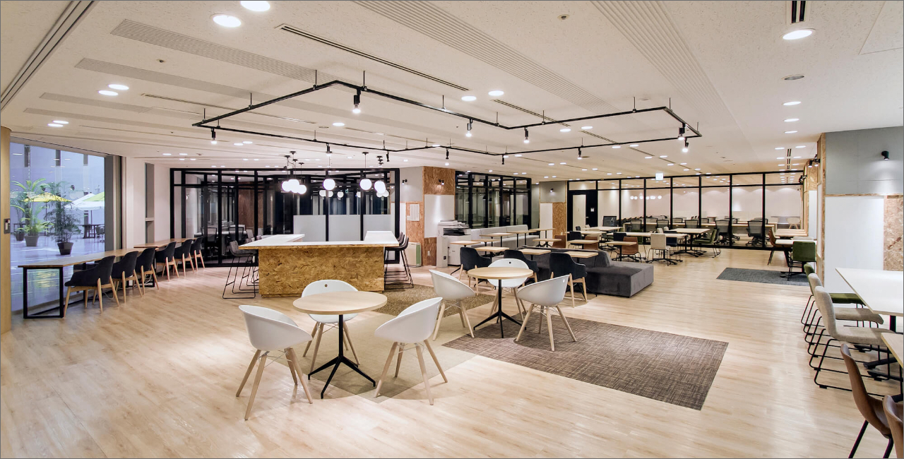 効率的にお仕事・お勉強を進めていただくため、集中して作業できる静かなスペースとリモート会議・打合せ・食事可能なスペースの2つのエリアをご用意しております。